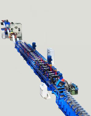 1.貨架立柱冷彎型鋼設備包括液壓開卷、校平、送料、沖孔、成型、剪切、出料。控制采用西門子PLC,貨架立柱生產(chǎn)線,觸摸屏輸入,自動化程度高、操作方便、生產(chǎn)效率高,整線生產(chǎn)速度可達到40m/min。