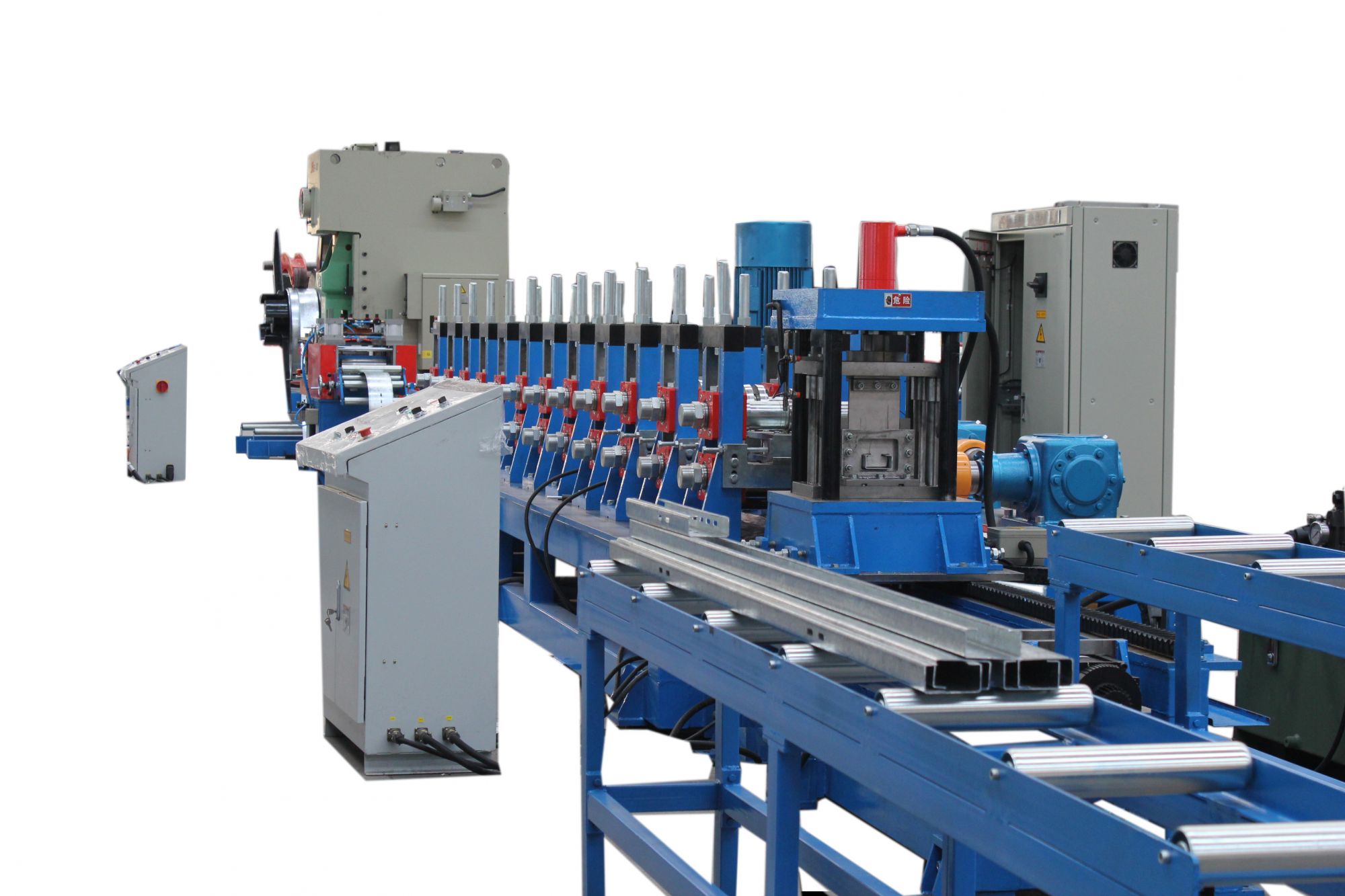 通過切換可生產多種截面、不同規(guī)格支架型材。成品直線度好。該線自動化程度高,速度快,生產線速度:10米/分鐘。